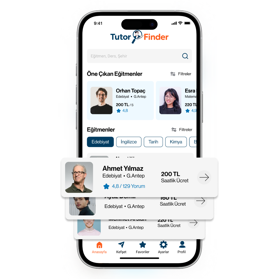 Tutor Finder, öğrenciler ile alanında uzman öğretmenleri hızlı ve güvenilir şekilde buluşturan özel ders platformudur. İlkokuldan üniversiteye, sınav hazırlığından mesleki gelişime kadar her seviyede doğru öğretmeni kolayca bulmanızı sağlar.