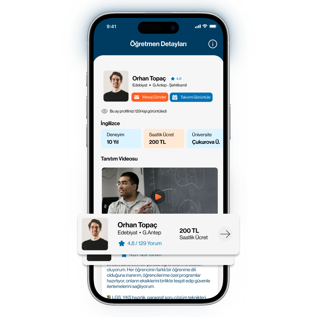 Tutor Finder’da her öğretmenin eğitim geçmişini, uzmanlık alanlarını, öğrenci yorumlarını, başarı hikâyelerini ve ders ücretlerini detaylıca inceleyebilirsiniz. deneyimi ve öğrenci geri bildirimleri sayesinde size en uygun olanı kolayca belirleyin.